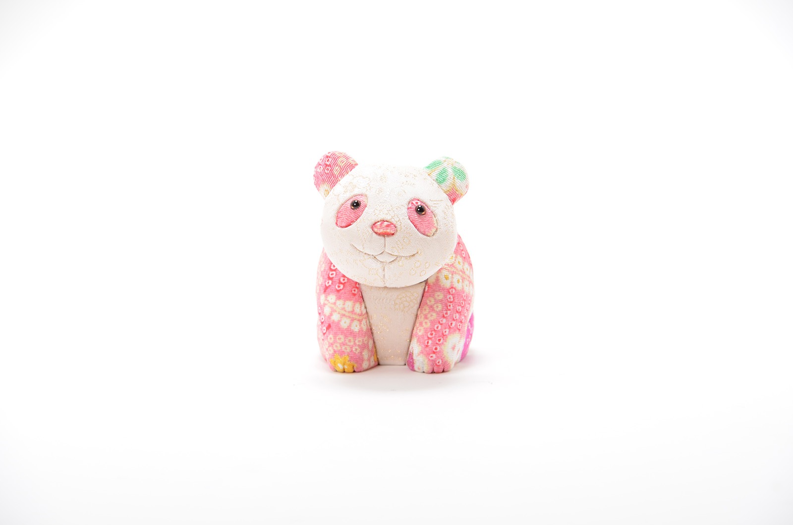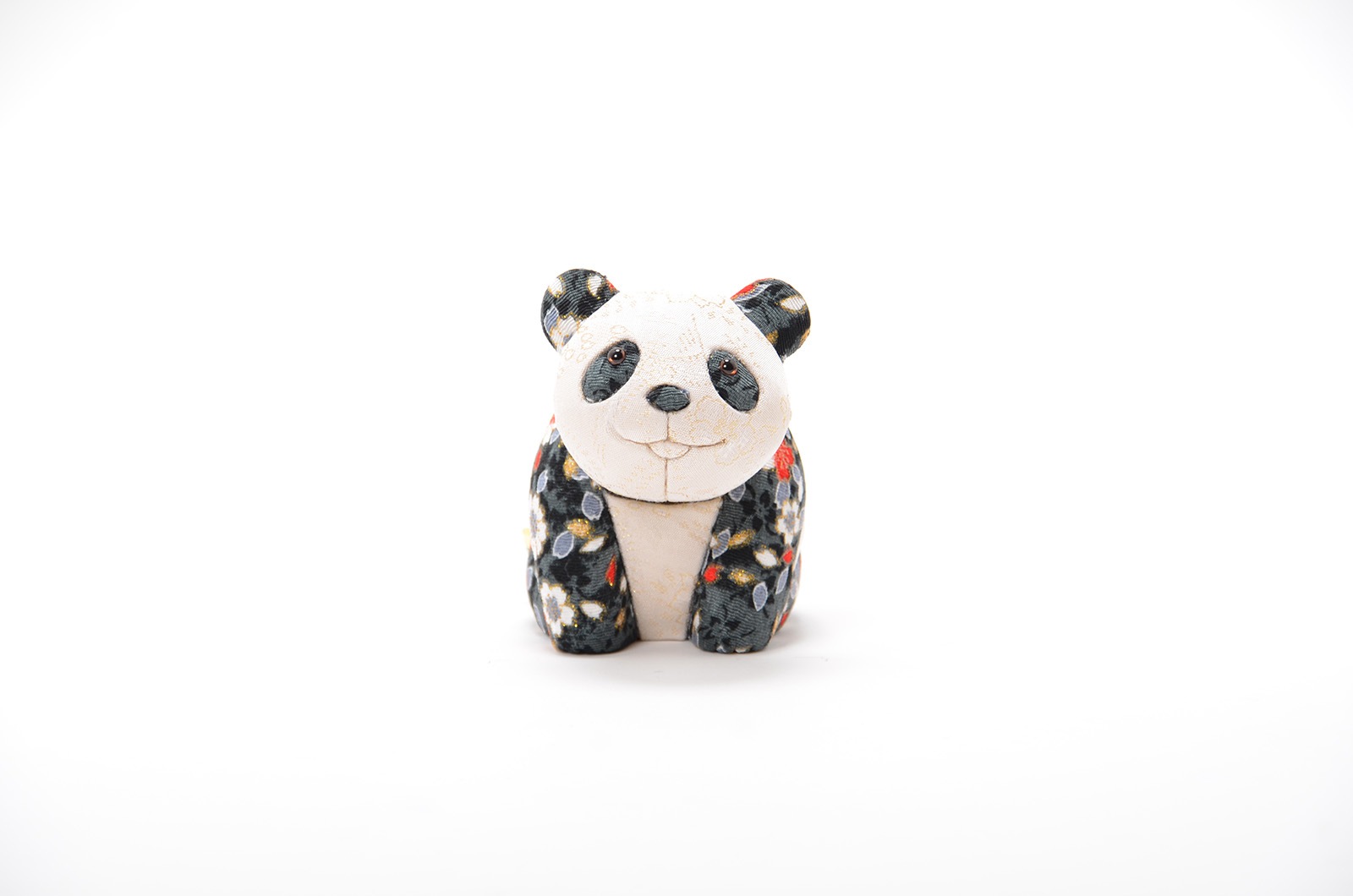 誰からも愛されるパンダの愛くるしい姿を、優しさと華やかさを合わせ持つ江戸木目込み人形と、郷土玩具首振り人形の要素を融合させ表現しました。